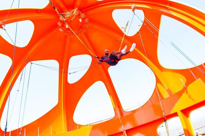 而位于15层的南极球,则与船艏北极星相对,是个直径为11米的中空橙色球体,其灵感来源于自由落体从北极出发,穿越地心最终抵达南极,在地球引力作用下发生的物理加速与减速过程。球外是悬空玻璃步道,球内设4个蹦极床,以VR科技为大伙模拟穿越地心之旅,喜欢新鲜和刺激的你一定不能错过。