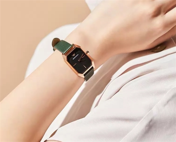 雅墨绿皮带女表显得很高贵,镜面矿物质玻璃极简的风格,看起来处处透露着干练。