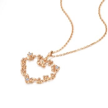 全新V&A「Bless」18K 红色黄金钻石套链与耳环,灵感便源自18世纪法国珠宝装饰设计师Jean Henri Prosper Pouget的珍藏手稿。周生生工匠大师取材当中的心形符号与花环元素,运用柔和优美的现代线条,重新演绎古典风格,结合精湛工艺与华丽美钻,质感细腻唯美,刻画爱情的浪漫神随,令人怦然心动。穿过人群,邂逅与自己心意相通的TA,让V&A珠宝映照你们的默契时刻,在欢聚中开启浪漫惊喜!